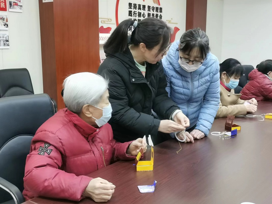 旺泉街道望泉西里南三社区新时代文明实践站开展“灵活手脑,快乐编织”DIY活动