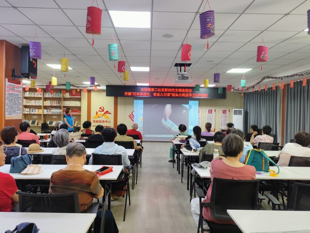 仁和镇太阳城第二社区新时代文明实践站开展“巧手拼清凉 安全入万家”手持小风扇制作活动