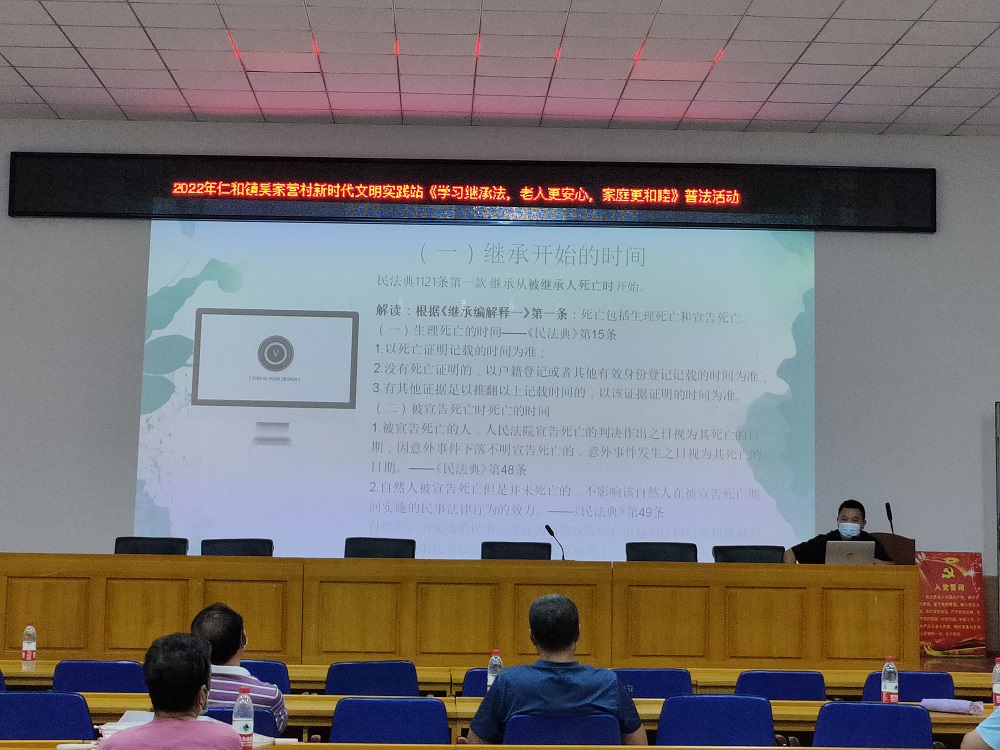 为增强辖区居民法治观念,促进家庭和谐,近日,仁和镇吴家营村新时代文明实践站开展“学习继承法,老人更安心,家庭更和睦”普法活动。 [查看详情]
