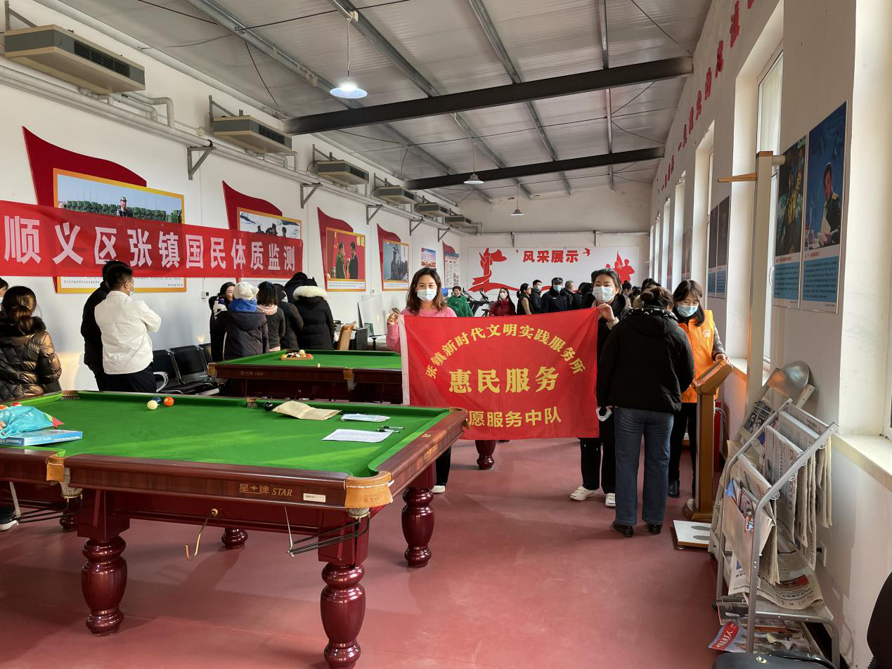 张镇文明实践所惠民服务志愿服务中队于2022年1月开展2021 年顺义区国民体质监测活动,完成了对辖区内生活工作的100名成人抽样体质监测。 [查看详情]