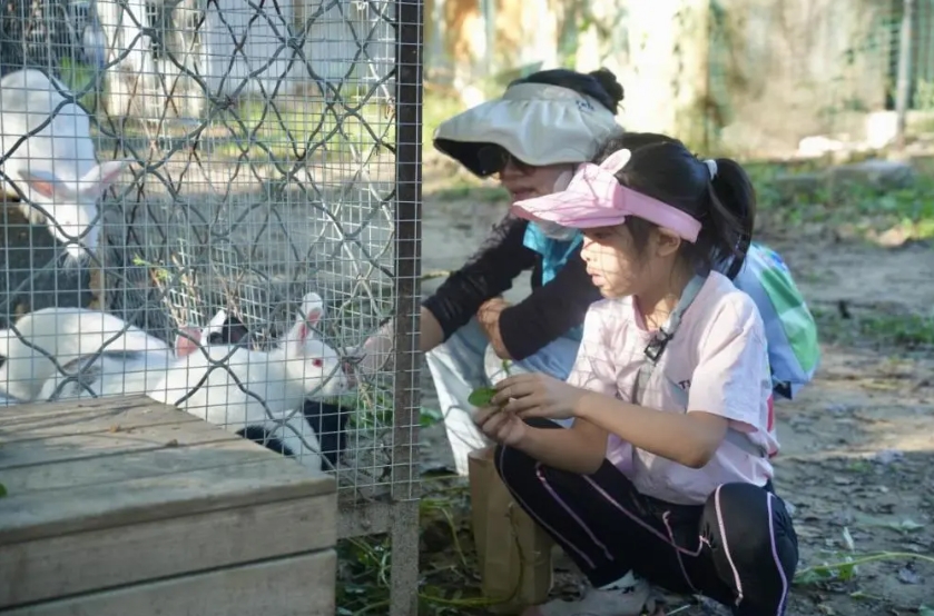 孩子们用在花生地捡拾起来的藤蔓喂食小羊和小兔子,与小动物亲密接触。农场的小动物种类很多,家长也坦言有很多是在城区接触不到的家禽种类,对小朋友眼界拓展也有帮助,和小动物近距离接触也能够让孩子们深刻领悟到生物多样性的重要性。