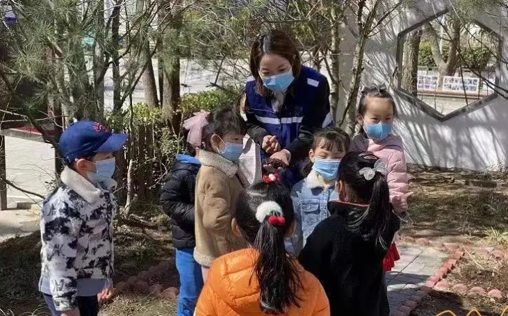 江山赋社区党支部书记亓伟伟为小朋友们讲解生态环保理念