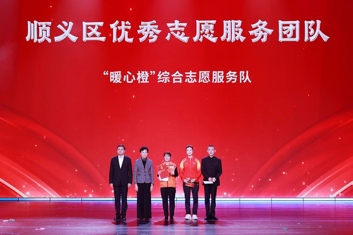 市委宣传部副部长、首都文明办主任滕盛萍,顺义区委副书记、区长崔小浩共同为双丰街道“暖心橙”综合志愿服务队、后沙峪镇江山赋社区青年志愿者服务队、北京厚博孤独症人士关爱中心、顺义税务青年志愿服务队、北京工业大学耿丹学院青年志愿者服务队、光明街道裕龙三区老党员星火志愿护河队共6支队伍颁发顺义区优秀志愿服务团队证书。