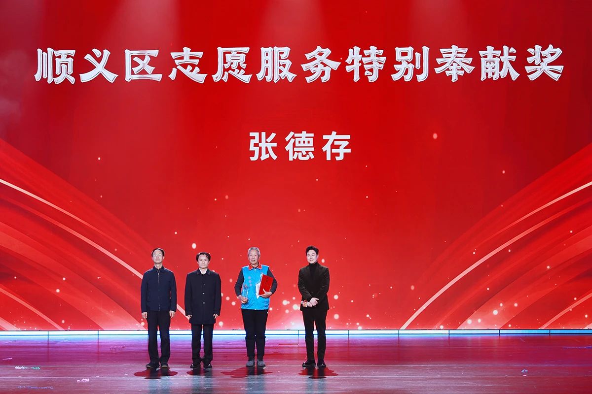顺义区志愿服务特别奉献奖获奖者上台领奖。