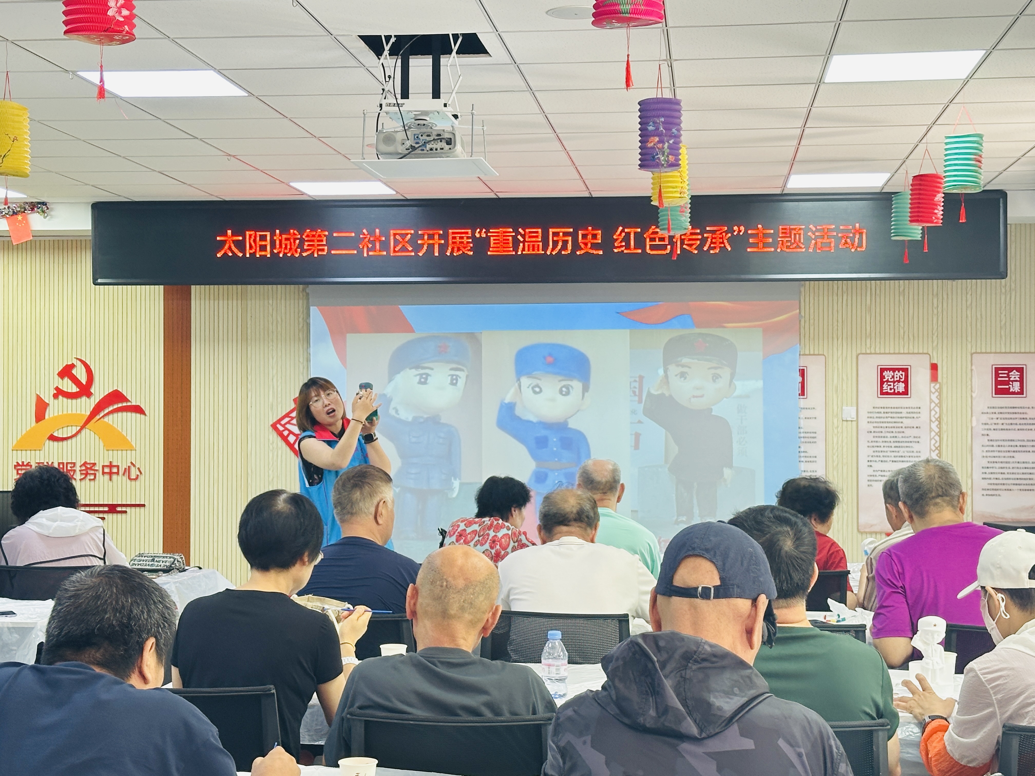 “红军不怕远征难,万水千山只等闲”,活动现场响起激昂的红色经典歌曲,悠扬而铿锵的旋律让大家在心中生发对军人的崇高敬意。随后,老师带大家一同制作红军模型,居民们在白色石膏上认真勾勒线条、精心涂色,每一笔一划都饱含深情。经过仔细雕琢,一个个神采奕奕的红军模型跃然眼前,仿佛诉说着那段波澜壮阔的革命岁月。