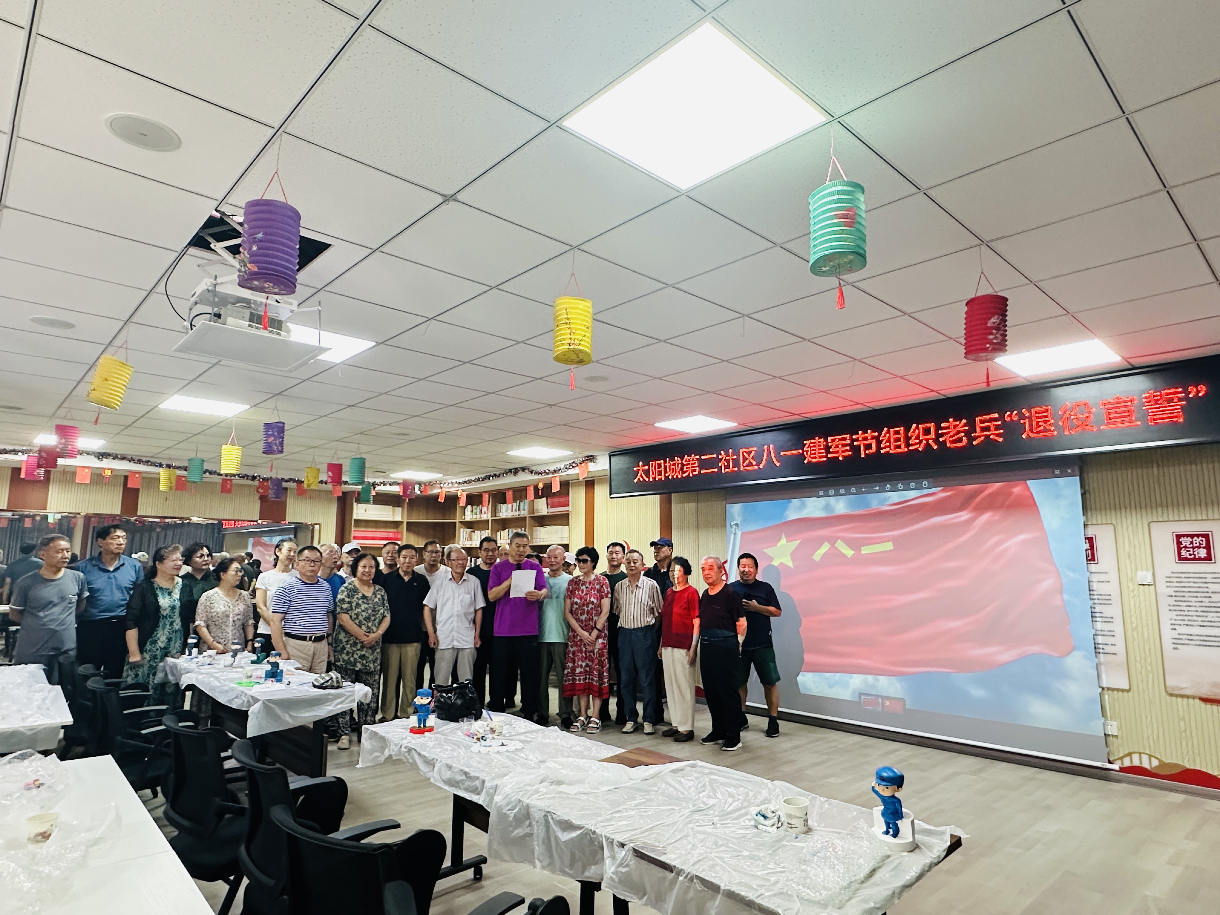 为庆祝中国人民解放军建军98周年,弘扬爱国拥军传统,8月1日,太阳城第二社区新时代文明实践站举办了“重温历史 红色传承”主题活动,共邀请20余位退役军人和居民参加。