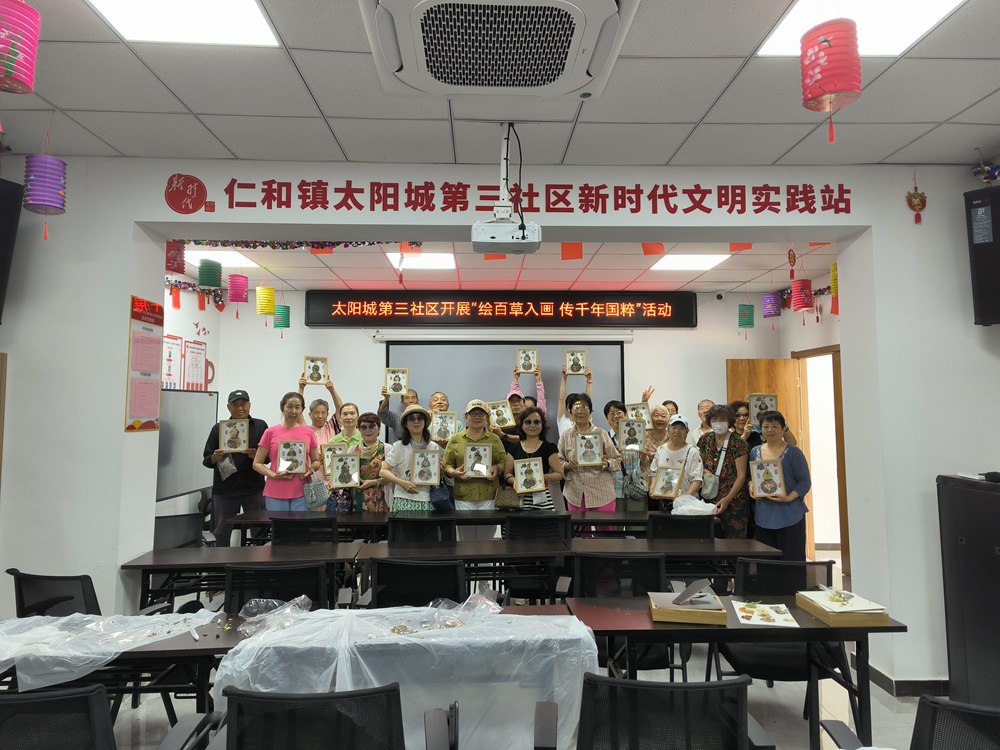 仁和镇太阳城第三社区新时代文明实践站举办“绘百草入画 传千年国粹”手工活动
