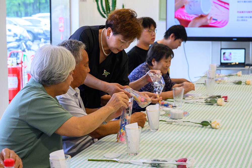 活动中,工作人员通过破冰游戏帮助青年们快速互相熟悉起来。随后,金婚家庭向大家分享携手走过漫长岁月的爱情故事与婚姻智慧,让青年们聆听岁月沉淀的情感箴言,学习经营感情和家庭的真谛。最后,在工作人员的指导下,金婚家庭、青年们纷纷动手制作珐琅杯,在传统技艺中感受节日的浪漫。