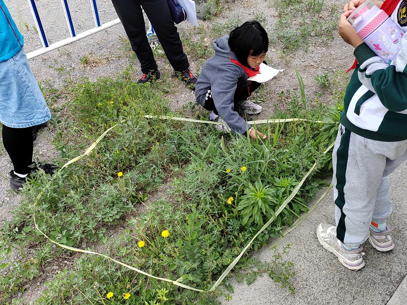 上午,志愿者为同学们讲解了如何正确采集植物、观察植物特征、判断植物科属等内容。学习相关知识后,每组同学取样调查一平方米土地上的植物多样性,经过努力辨析植物特征、查阅图鉴,同学们记录下了所观察到的植物种类。