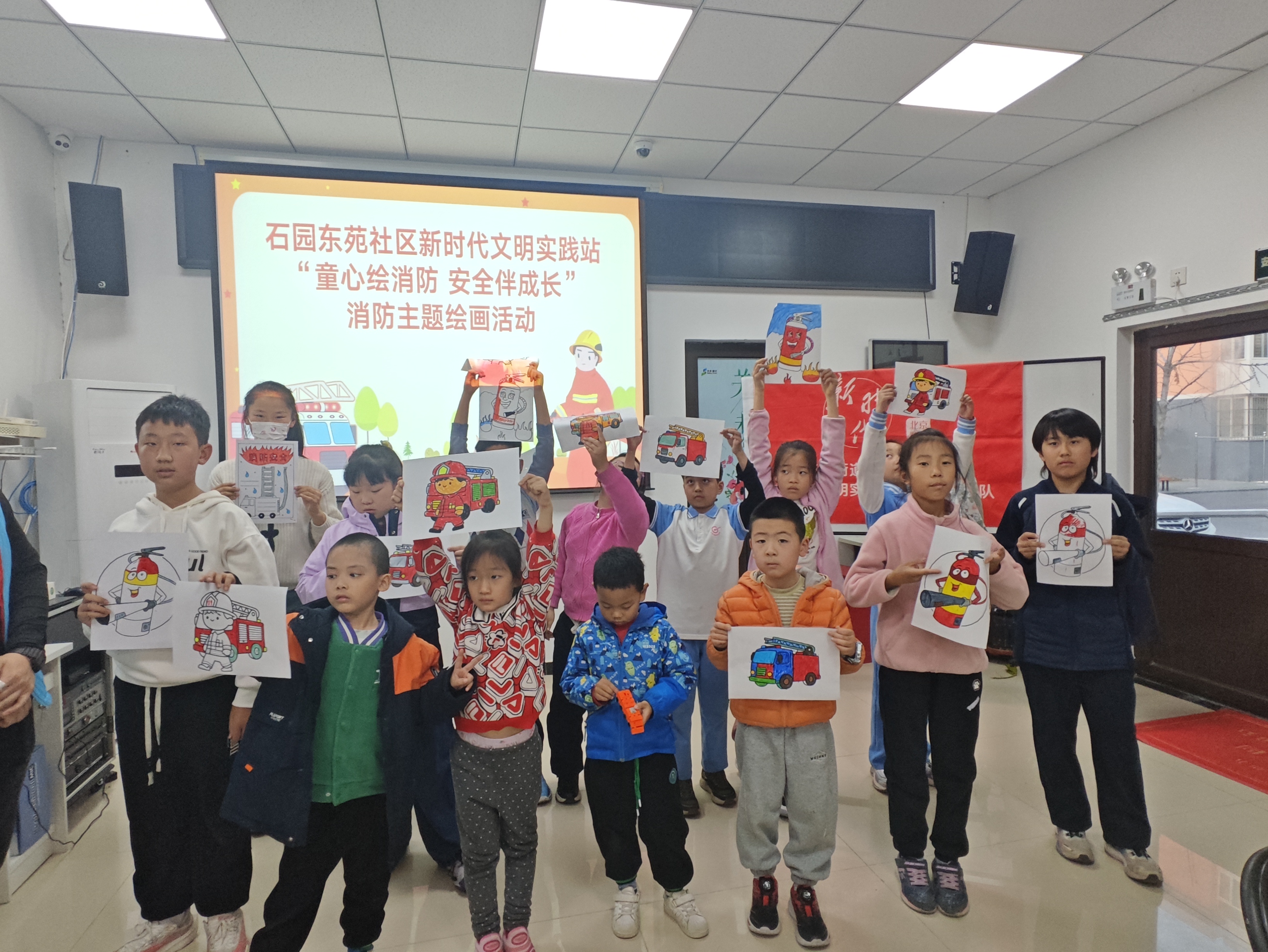 石园街道石园东苑社区新时代文明实践站开展“童心绘消防 安全伴成长”消防主题绘画活动