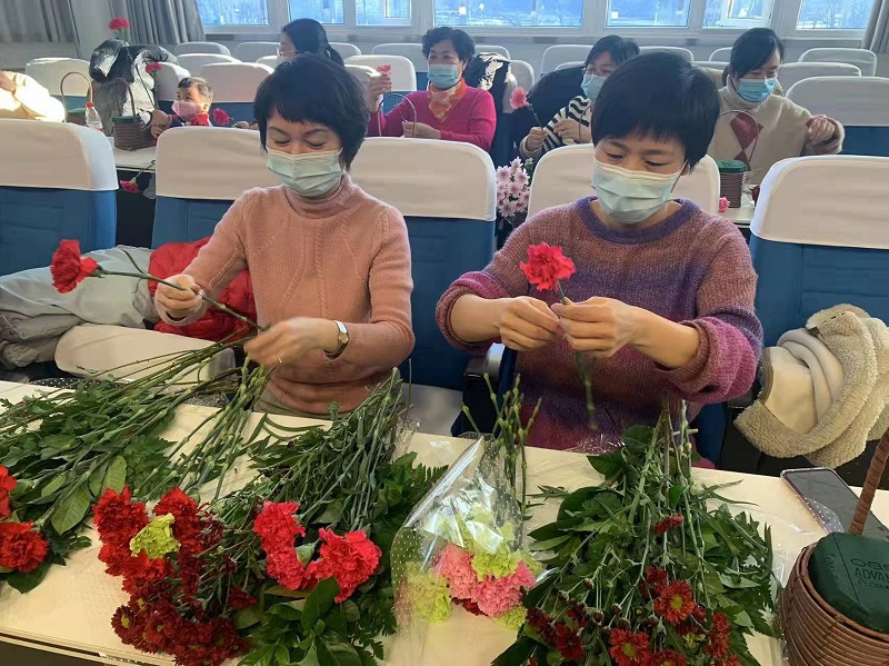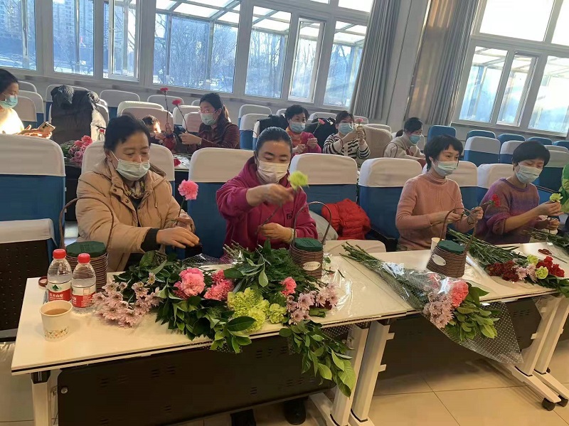 2021年12月30日,龙湾巧嫂现代农业科技园工作人员来到北京市顺义区胜利街道妇女联合会开展,助力乡村振兴,礼赞“最美家庭”插花活动。