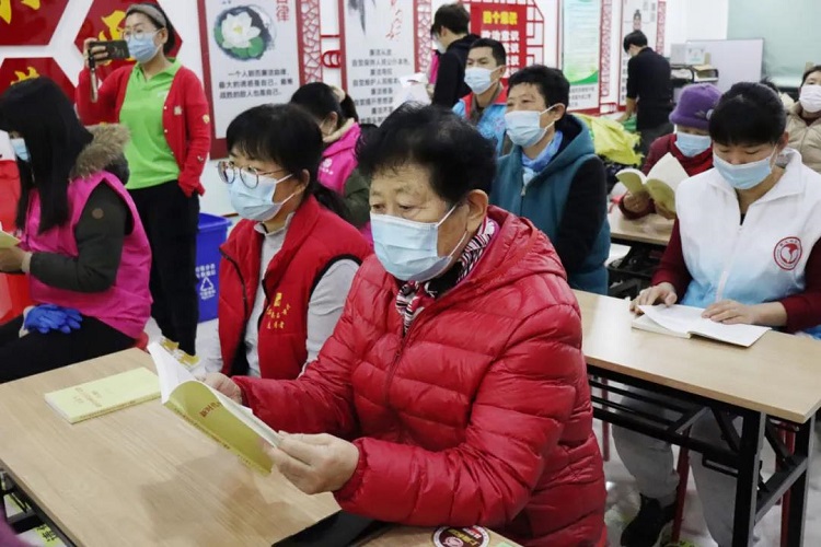 首先,区妇联三级调研员贾凤霞讲专题党课,向社区居民和社区巾帼志愿者诠释了“八个明确”和“十四个坚持”的含义,并把学习书籍送到手她们中,凝聚妇女群众思想共识。