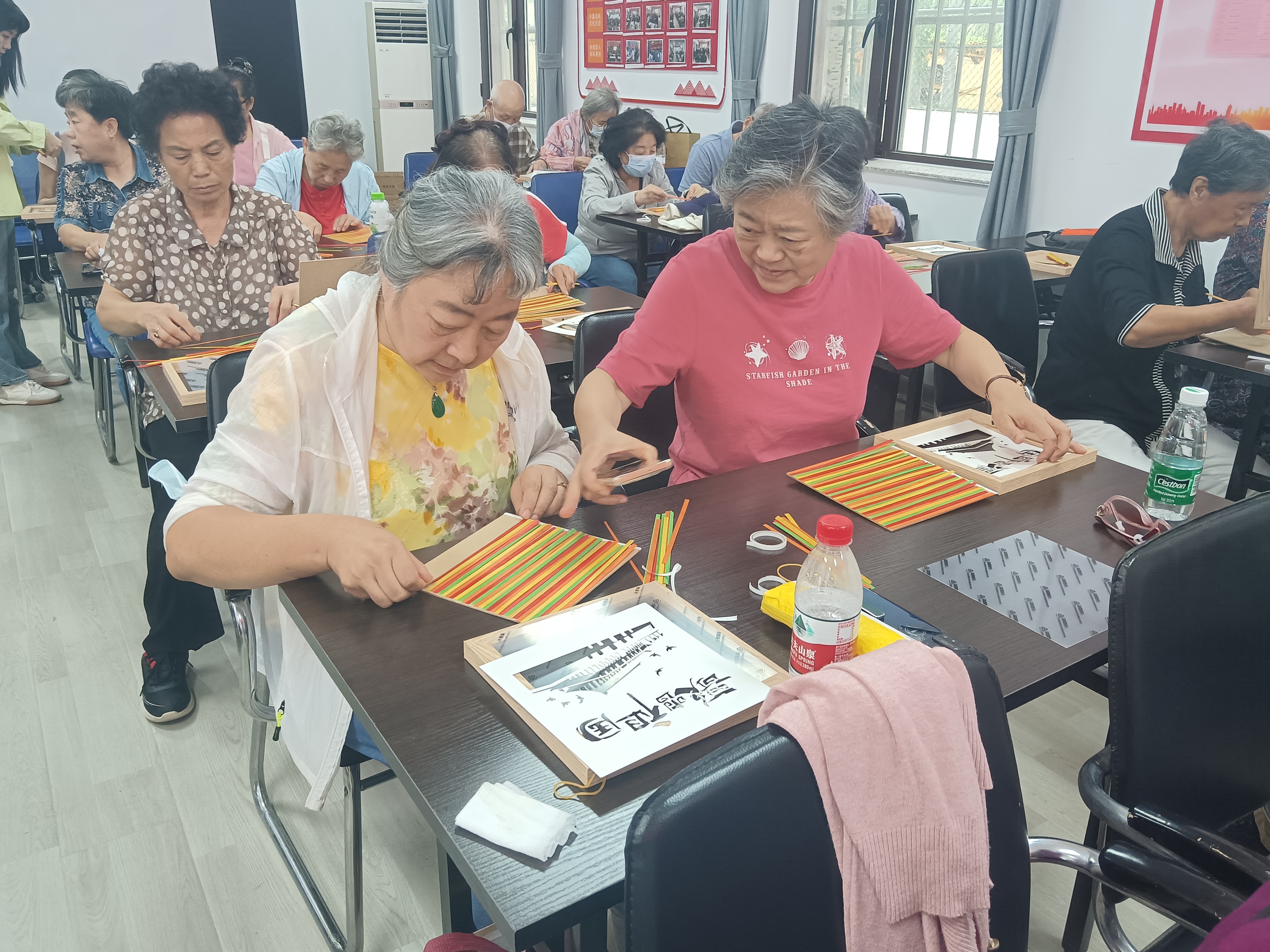 太阳城第一社区新时代文明实践站开展“传承非遗文化 喜迎国庆佳节”竹编画制作活动