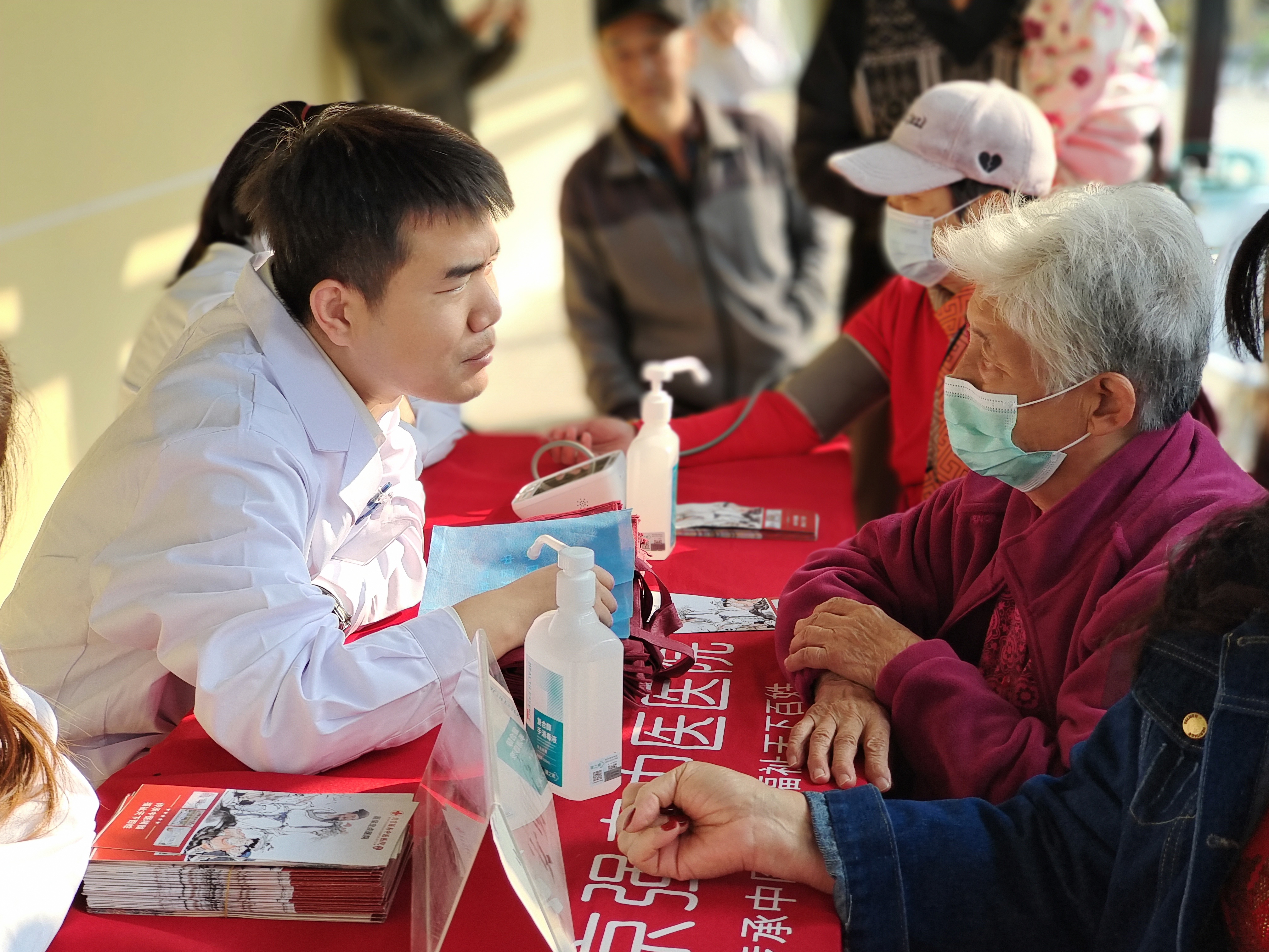 活动中,医护人员为老人们提供把脉问诊、测量血压、体检报告分析、中医手法按摩等医疗服务,到场咨询的老人络绎不绝。医护人员逐一为老人们测量血压、对每一位来义诊的老人,都仔细询问其身体状况,用通俗易懂的语言给予耐心细致的解答。