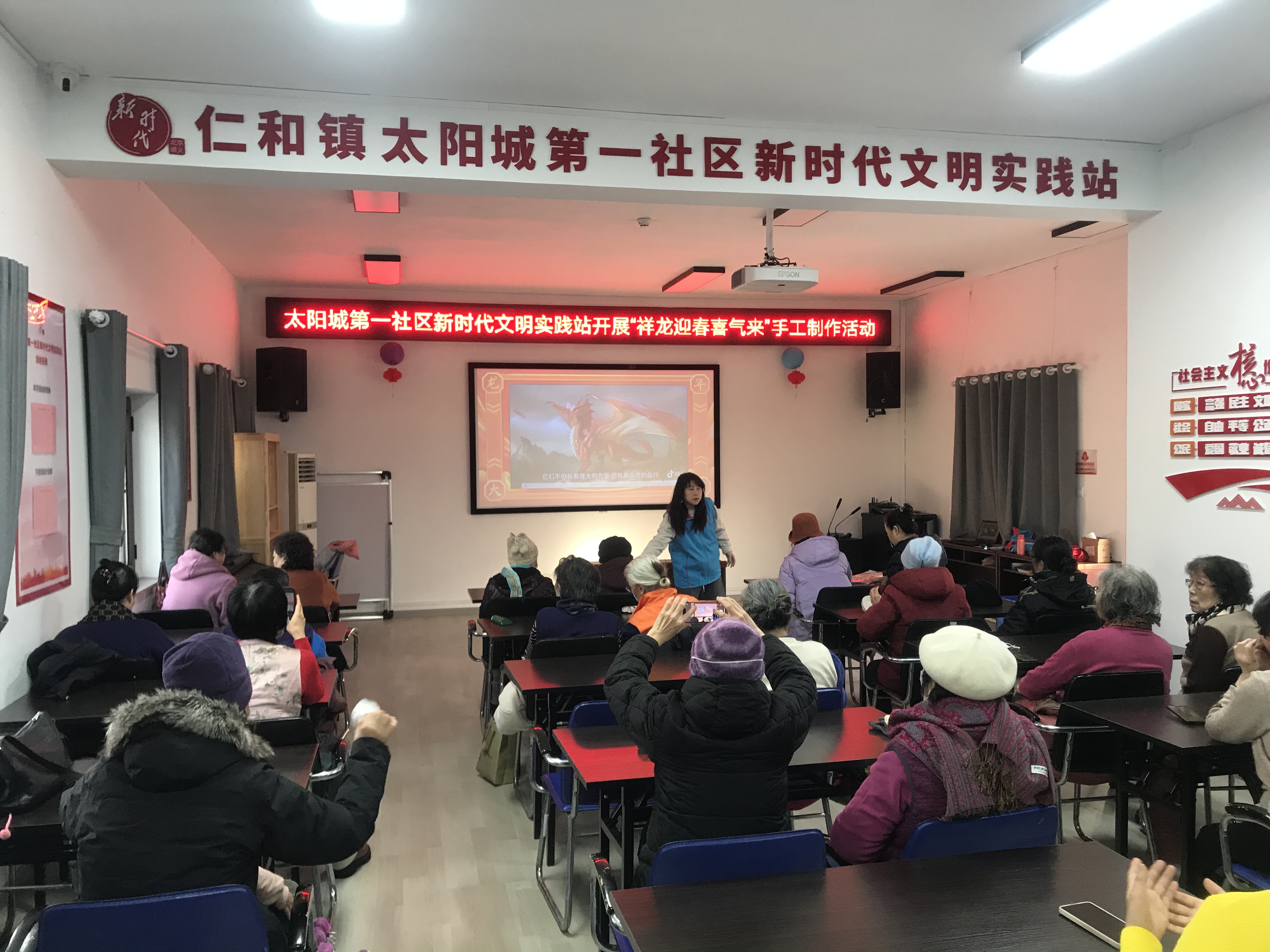 为迎接2024年龙年新春佳节,增添节日喜庆氛围,1月10日,太阳城第一社区新时代文明实践站开展了“祥龙迎春喜气来”手工制作活动,共20余位社区居民参加。
