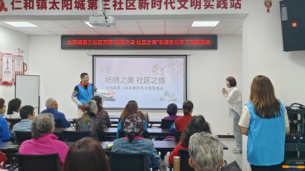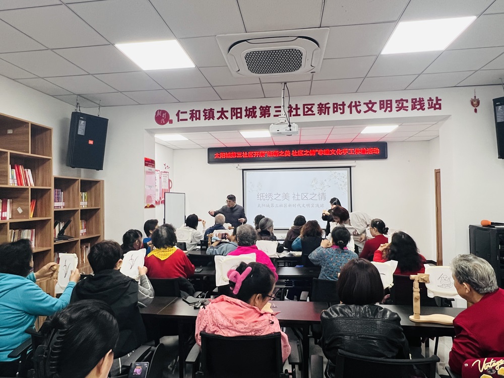 仁和镇太阳城第三社区新时代文明实践站开展“纸绣之美 社区之情”非遗文化手工体验活动