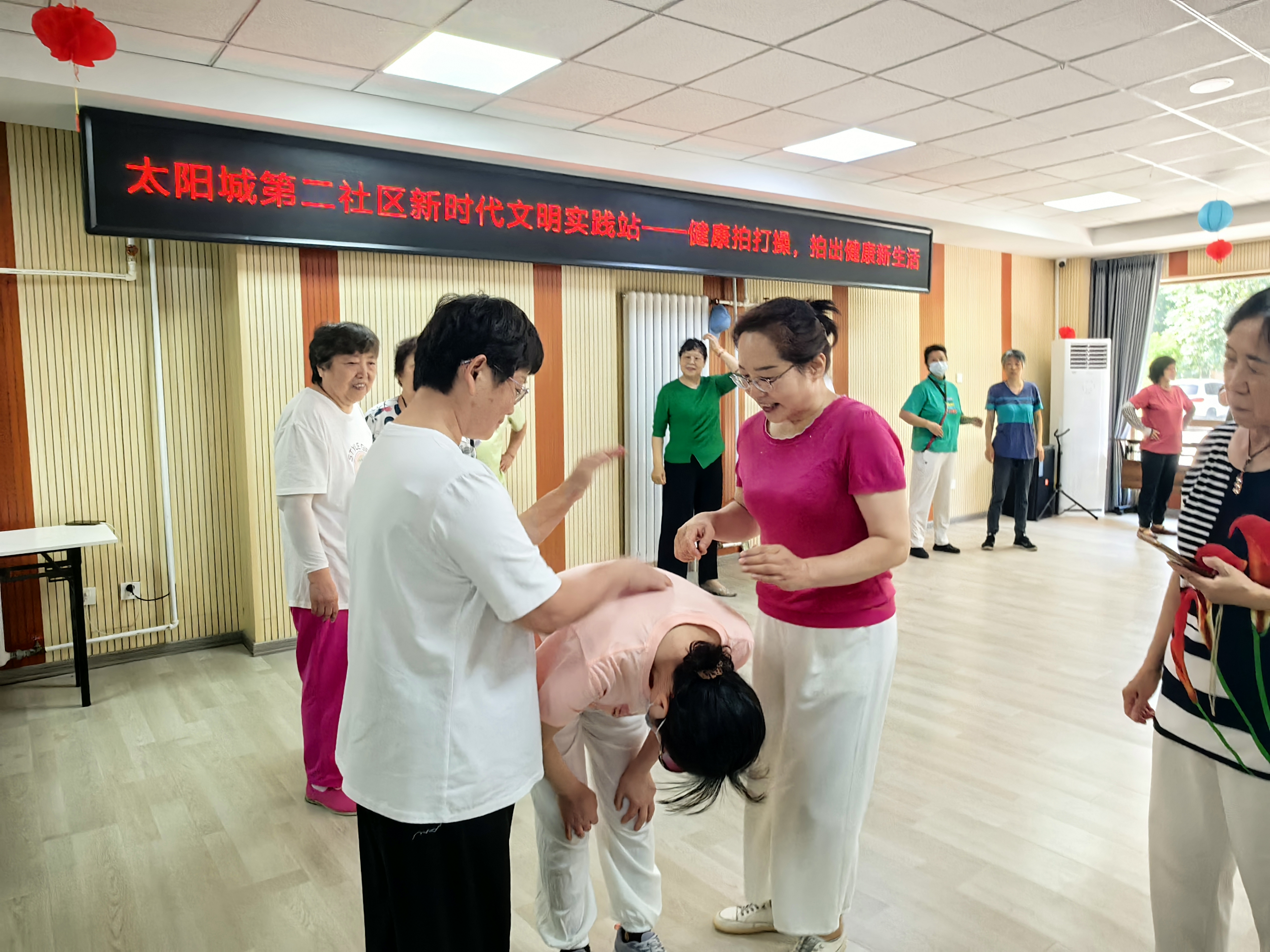 拍打操通过拍打穴位可以达到疏通经络、促进气血流通的效果,是一种简单易行的健身方法。活动中,老师为居民们讲解了不同位置穴位和经络的拍打方法,并现场示范了拍打手法的动作要领。随后,在老师的指导下,大家跟着音乐节奏拍打起来,大家学得很认真,一遍一遍地练习后,便很快掌握了拍打操的动作要领。