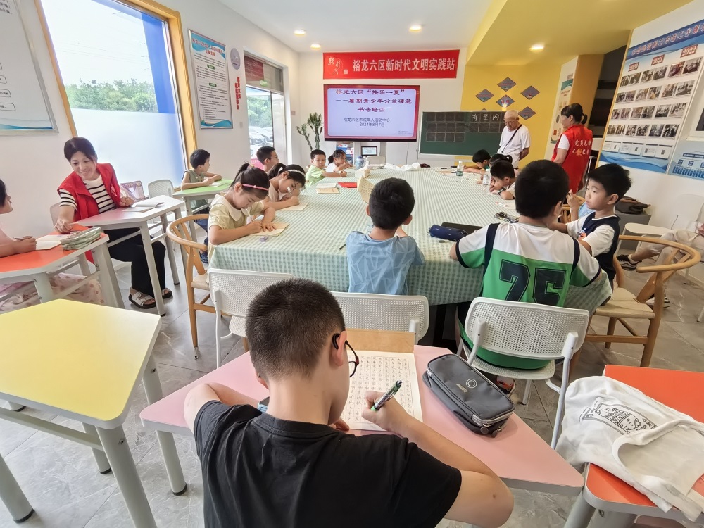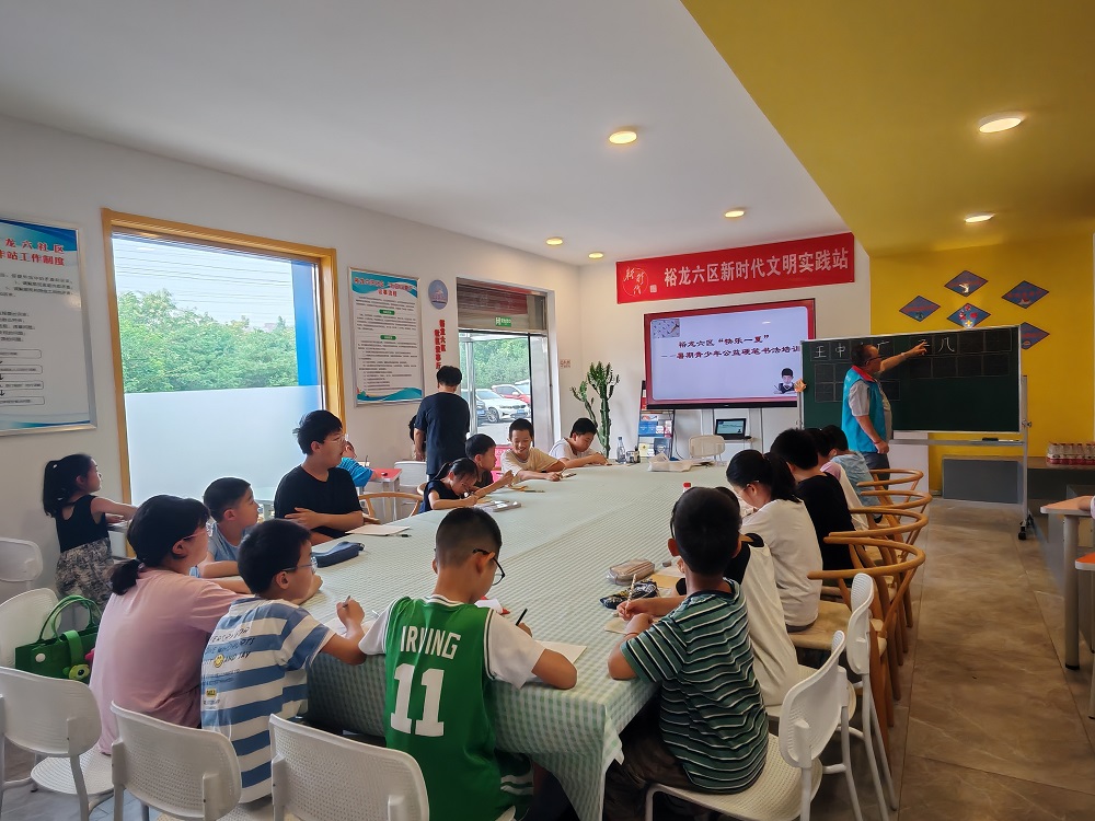 裕龙六区新时代文明实践站开展“快乐一夏”暑期青少年硬笔书法培训系列活动