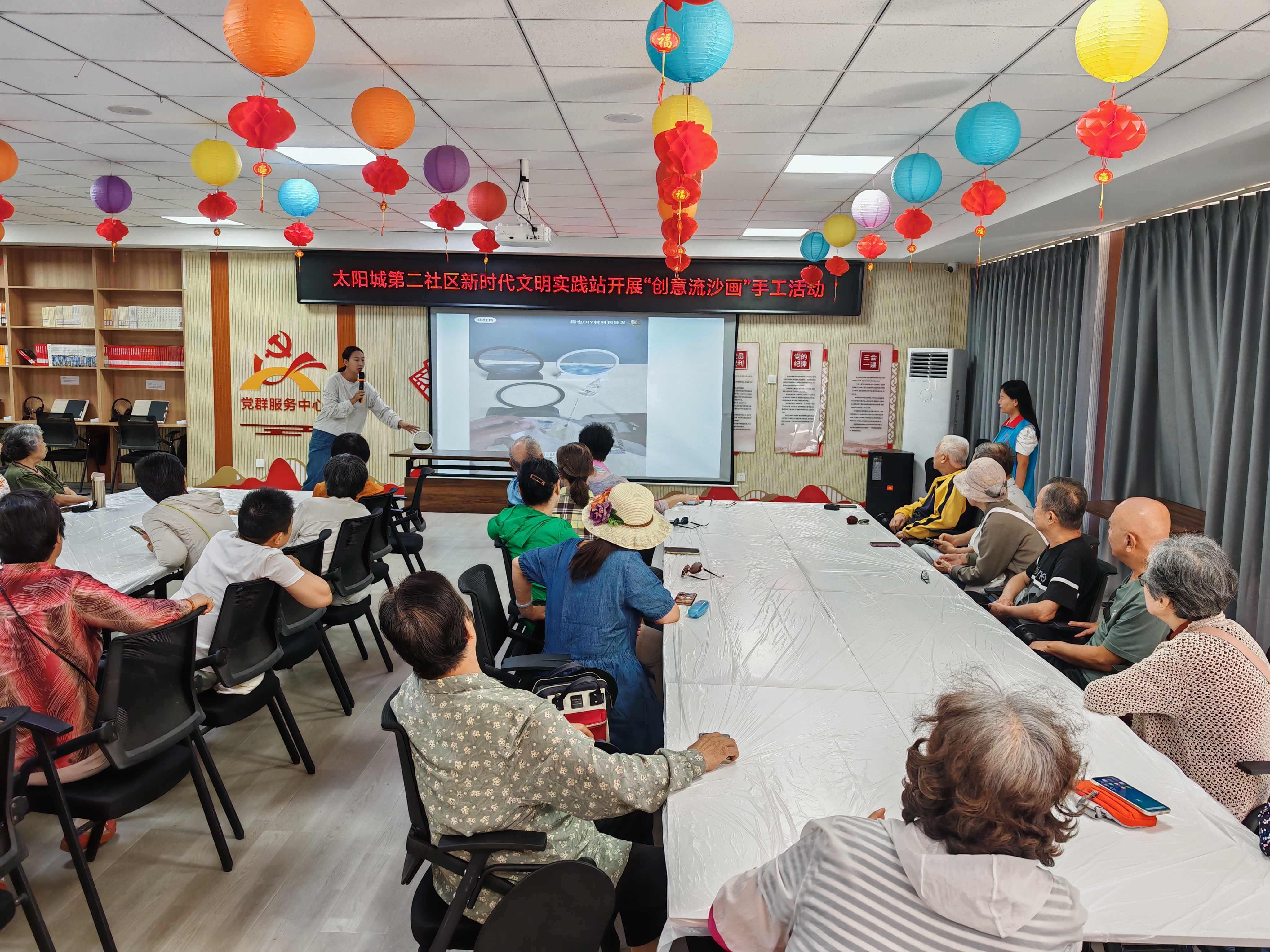 为继承优良传统,弘扬传统文化,营造浓厚的中秋节日气氛,近日,太阳城第二社区新时代文明实践站开展了“喜迎中秋,创意无限”3D流沙画创作活动,吸引了30余位社区居民参加。