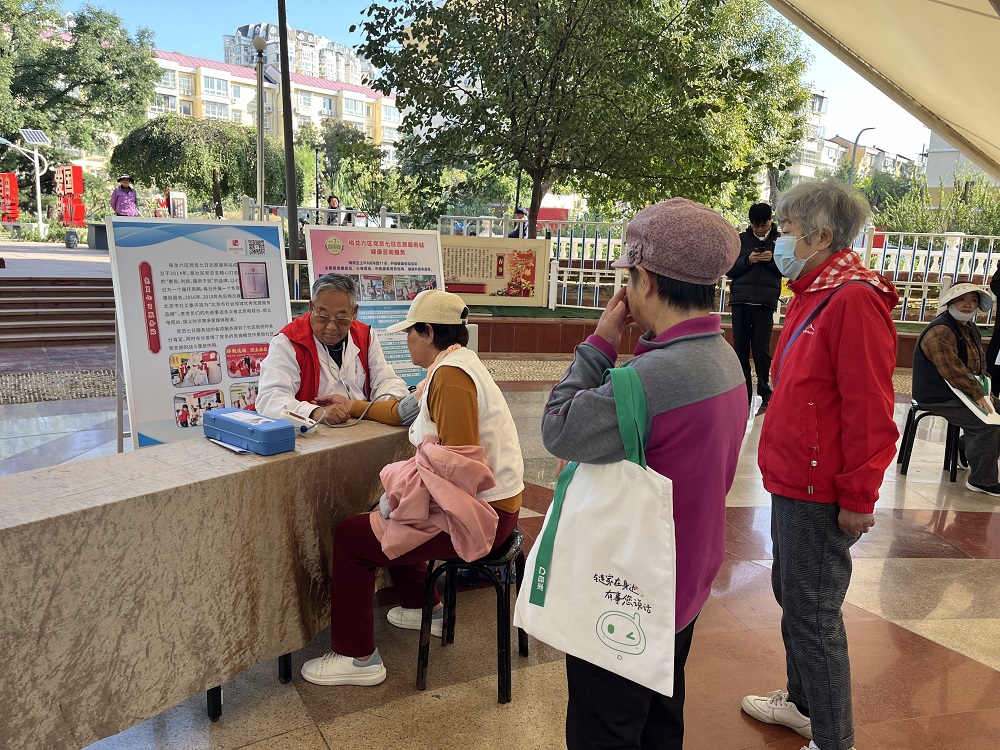 此外,在广场一侧,实践站还邀请到专业医生为居民们提供测量血压、血糖等健康检查以及咨询服务,让老人们对自己的身体健康状况有更清晰的了解。