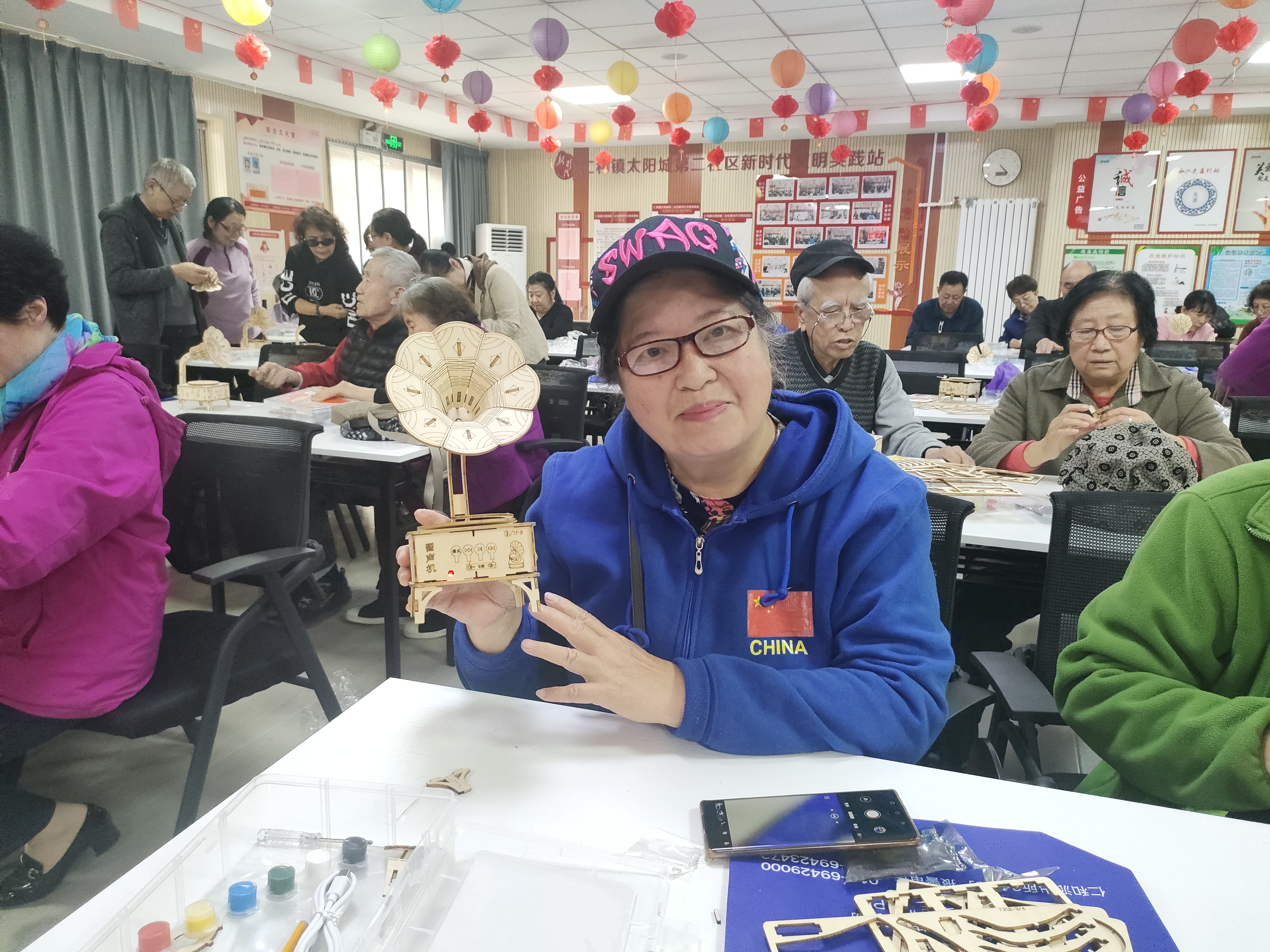 随着一个个漂亮的留声机呈现在眼前,大家打开开关、连接蓝牙后,那优美的音乐瞬间流淌而出,居民们的脸上绽放出自信而灿烂的笑容。这种从最初的构想到最终实现的完整过程,让每一位参与者都体验到了巨大的成就感。大家仿佛在这一刻成为了小小的发明家,深刻体会到了科学与手工相结合所带来的独特魅力,也因此对科学萌生出了更为浓厚的兴趣。
