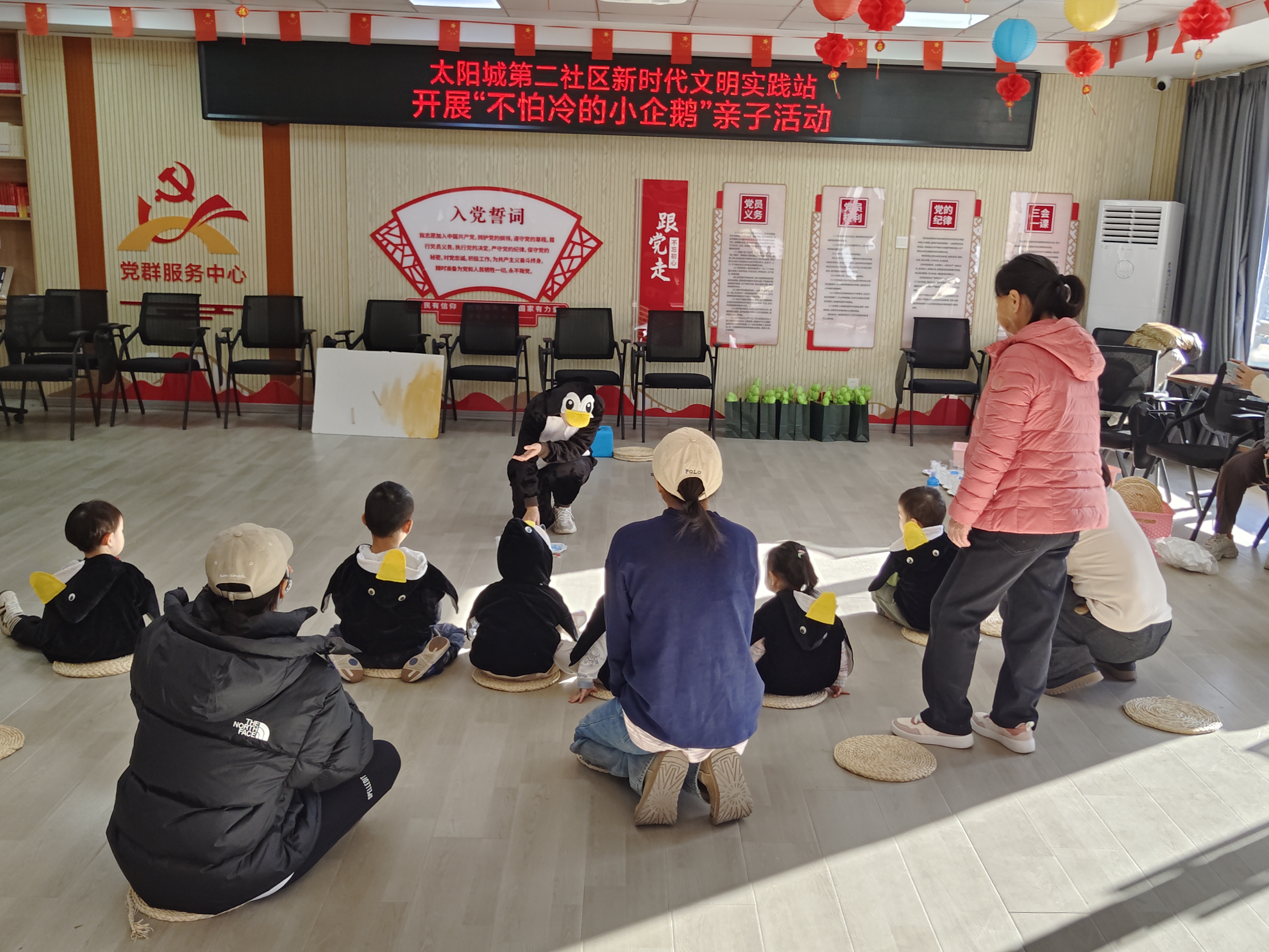 为丰富孩子们的假期生活,近日,太阳城第二社区新时代文明实践站开展了《不怕冷的小企鹅》亲子活动,共20余组家庭参加。