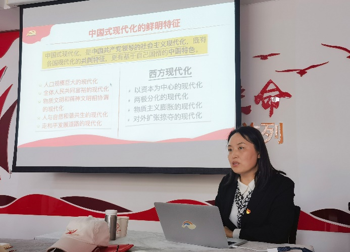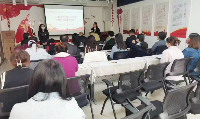 活动中,岳彦飞老师以《党的二十大精神解读——中国式现代化》为题,从中国式现代化的“鲜明特征与世界意义、历史探索与现实挑战、中心工作与实现路径”三个方面,深入浅出地解读了中国式现代化的本质要求、战略安排、重大原则等理论和实践问题,为干部群众深入学习贯彻党的二十大精神提供了有力指导。