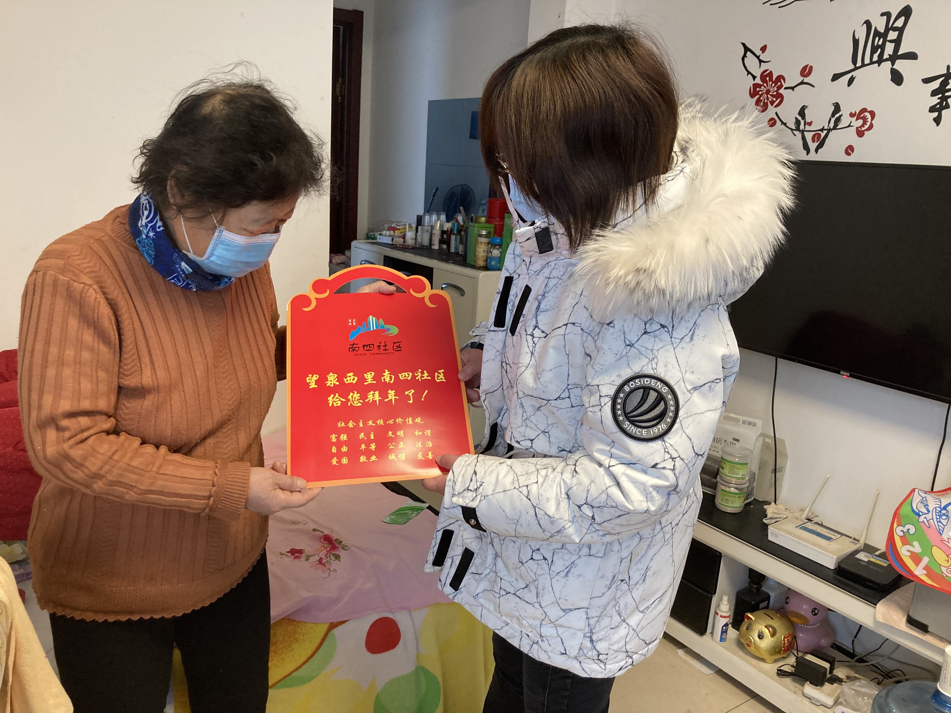 旺泉街道望泉西里南四社区实践站为老志愿服务队开展“弘扬文明新风 送福上门”走访慰问活动