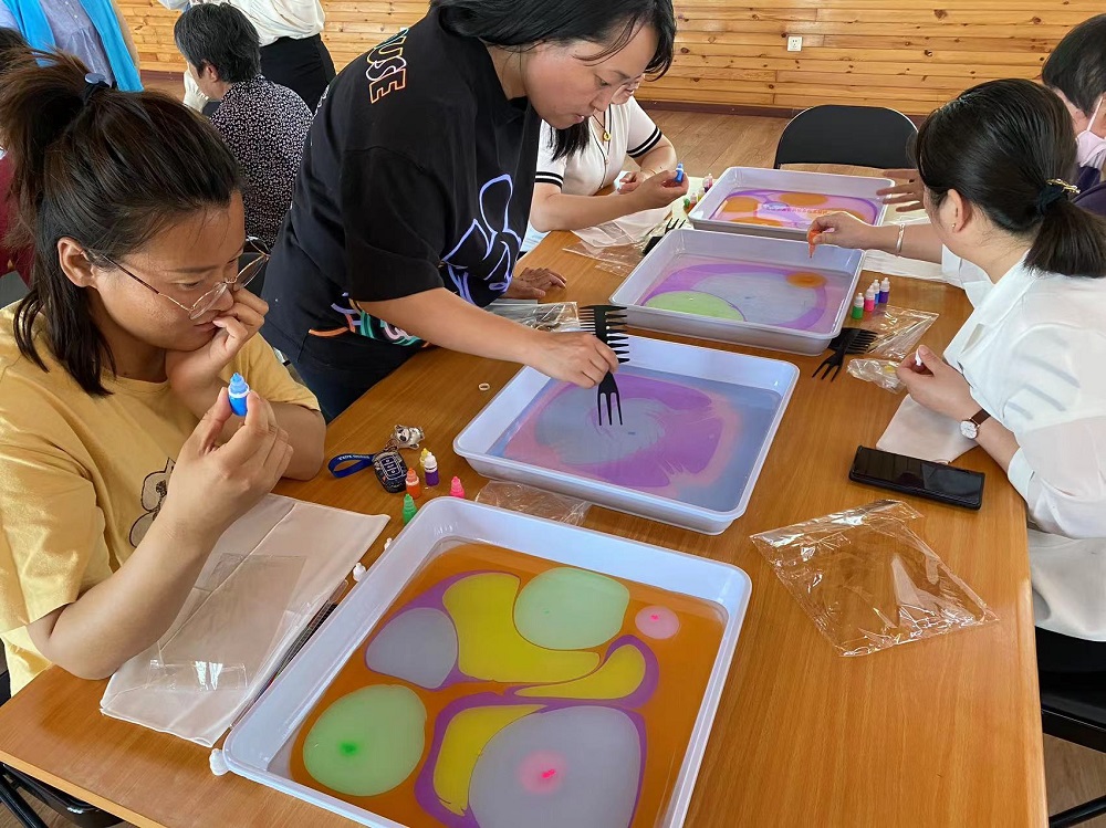 水拓画丝巾 非遗指尖承——龙湾屯镇文化惠民志愿服务队开展水拓丝巾活动