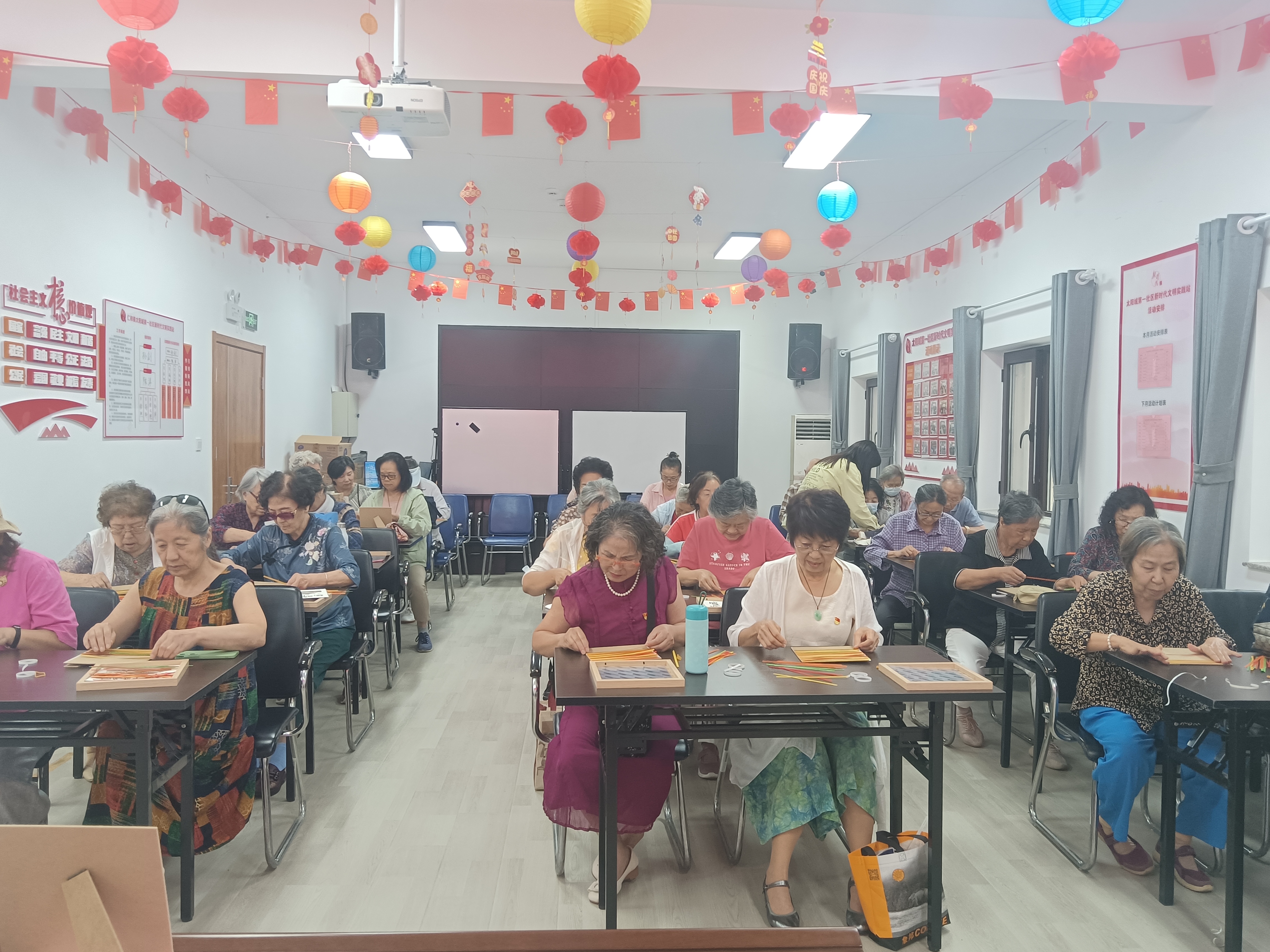 太阳城第一社区新时代文明实践站开展“传承非遗文化 喜迎国庆佳节”竹编画制作活动