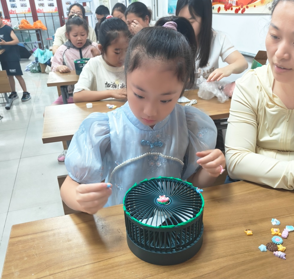 幸福东区新时代文明实践站开展“清凉一夏”奶油胶创意风扇手作活动