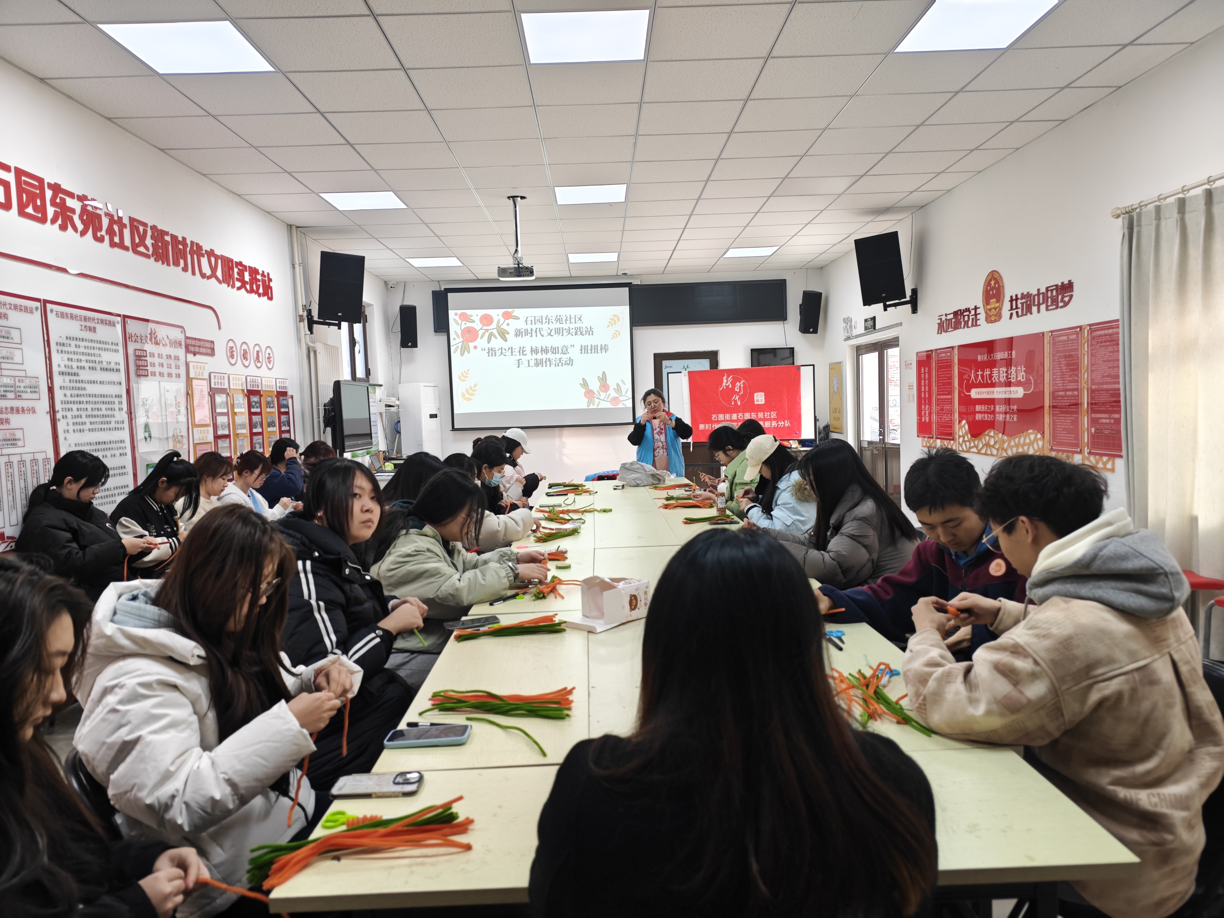石园街道石园东苑社区新时代文明实践站开展“指尖生花 柿柿如意”扭扭棒手工制作活动