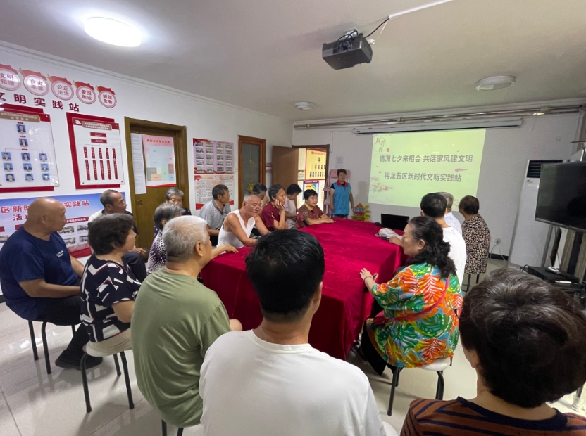 裕龙五区新时代文明实践站开展“情满七夕来相会 共话家风建文明”活动