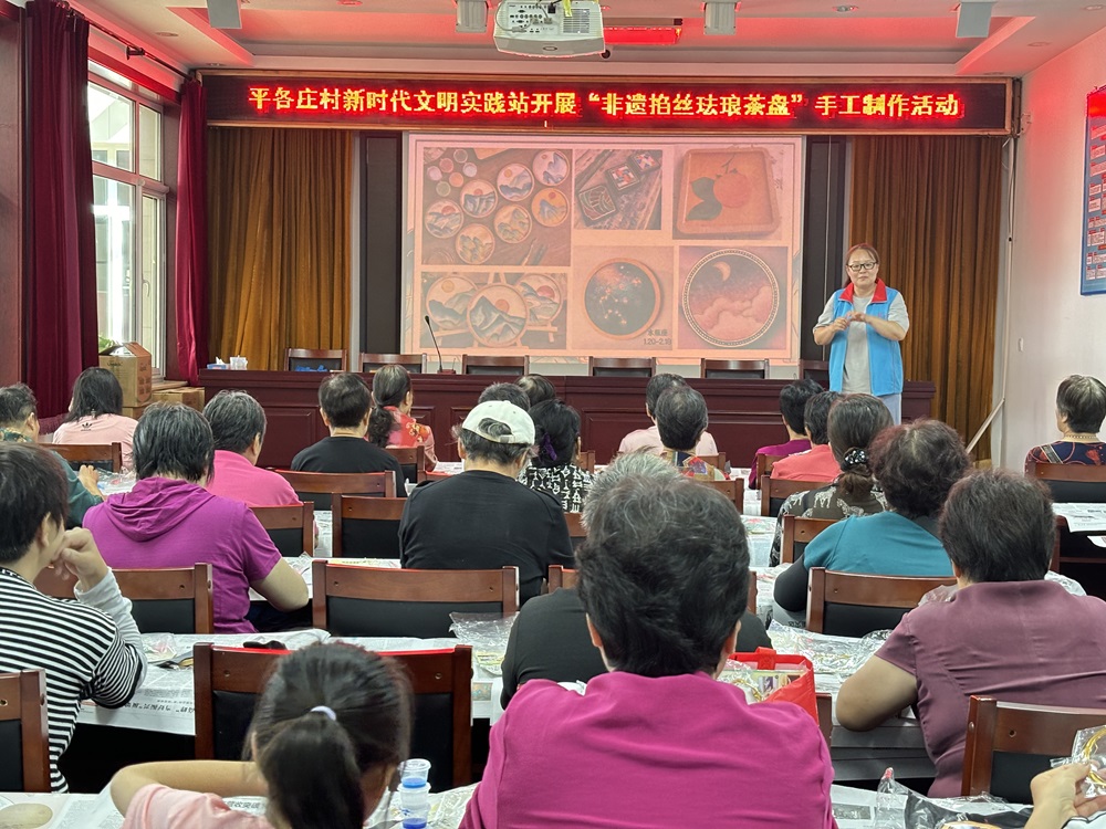 仁和镇平各庄村新时代文明实践站开展“非遗掐丝珐琅茶盘”手工制作活动