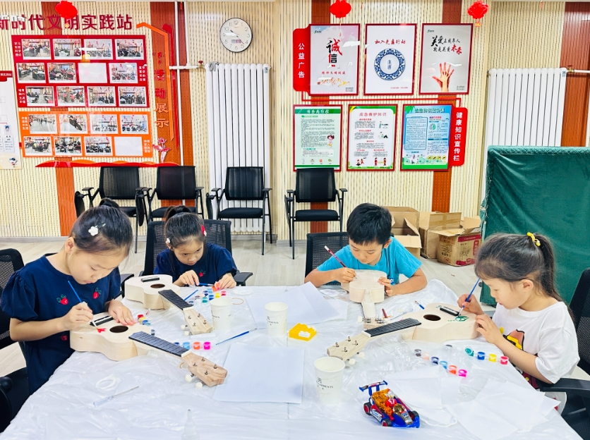 仁和镇太阳城第二社区新时代文明实践站开展“快乐暑期 ‘尤’你有我”尤克里里手工活动